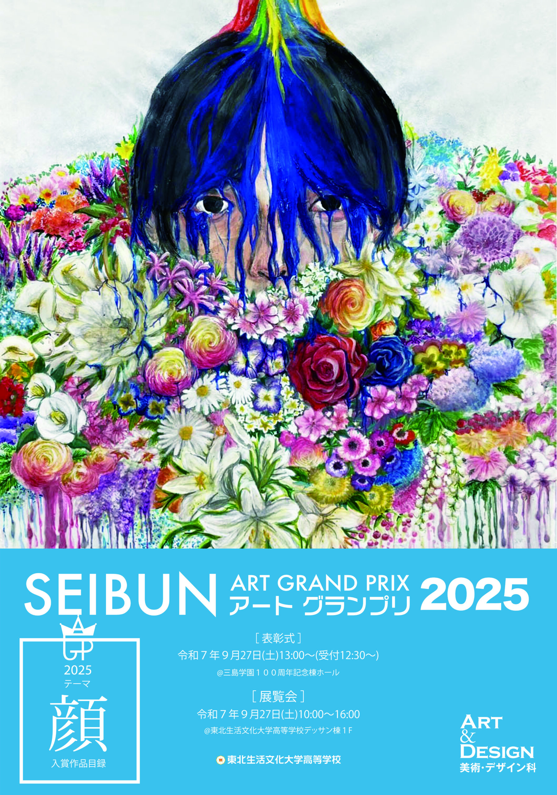 つきましては、下記のとおりSEIBUNアートグランプリ2025の表彰式および佳作賞以上の作品展示のご案内を申し上げます。ご多忙のところ恐縮ではございますが、受賞生徒の力作をご高覧賜りますようお願い申し上げます。また、表彰式へご出席いただけるよう、生徒の皆様のご協力を賜りますよう、お願い申し上げます。