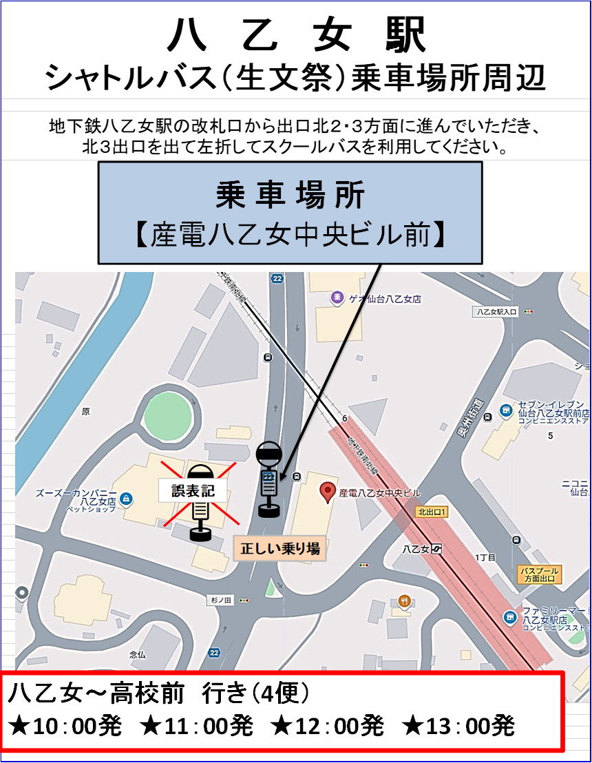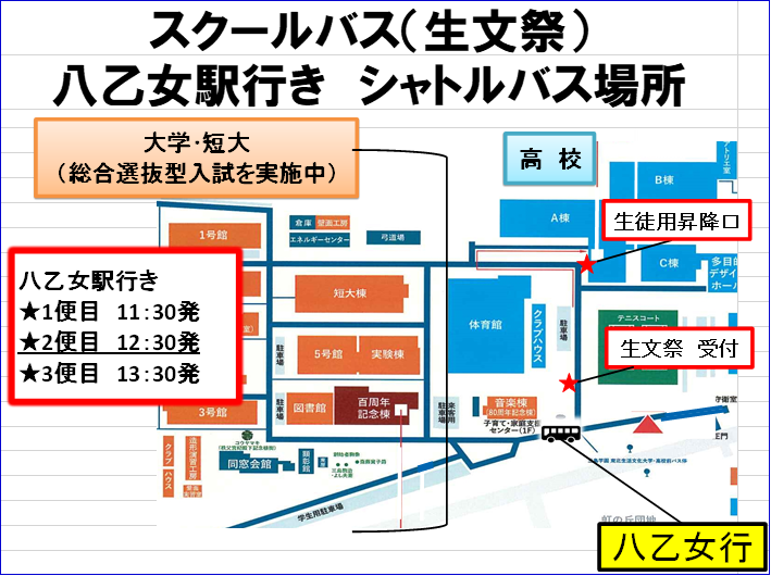 つきましては、八乙女駅から本校までのシャトルバスを運行いたします。