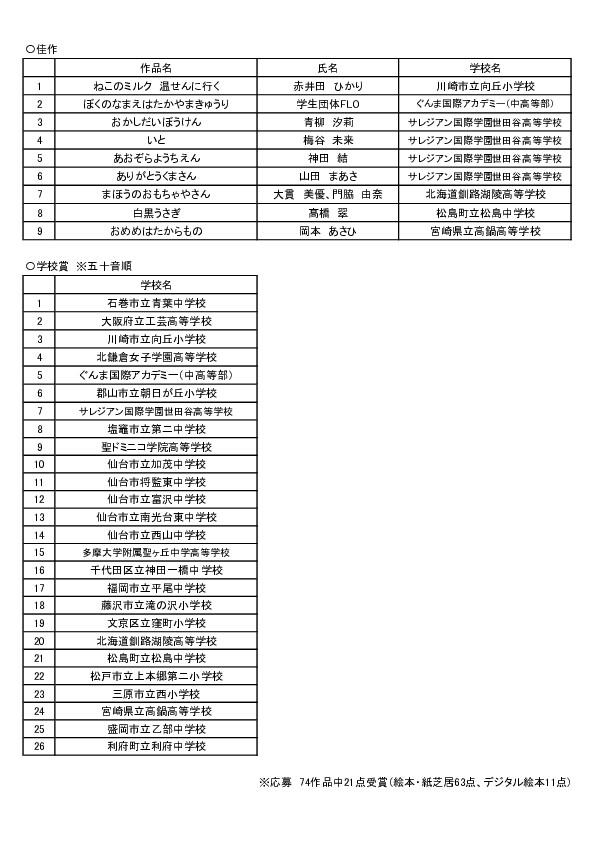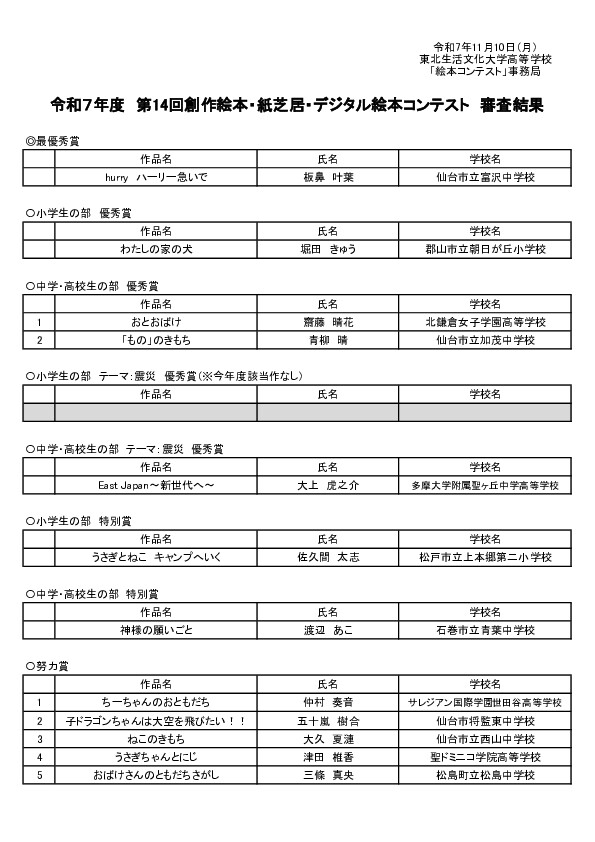 R7第14回創作絵本コンテストの審査結果を掲載します。