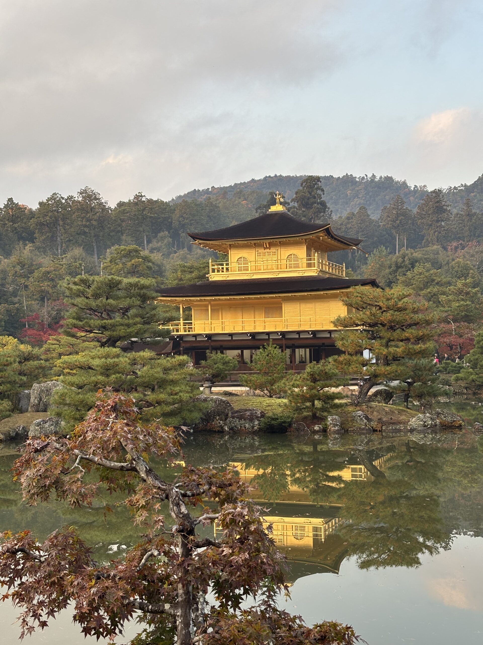 金閣寺では歴史建造物を見て写真で見るものと自分の目で見るものは迫力が違って見えてとても身近に感じるられることができました。
