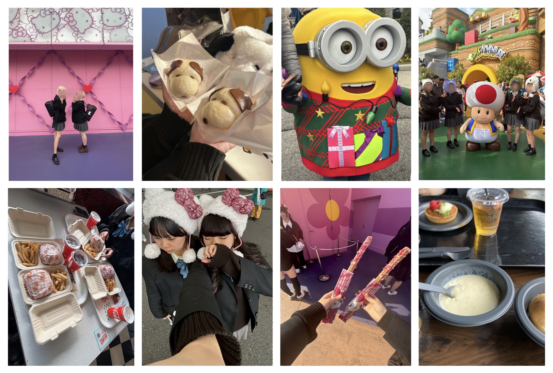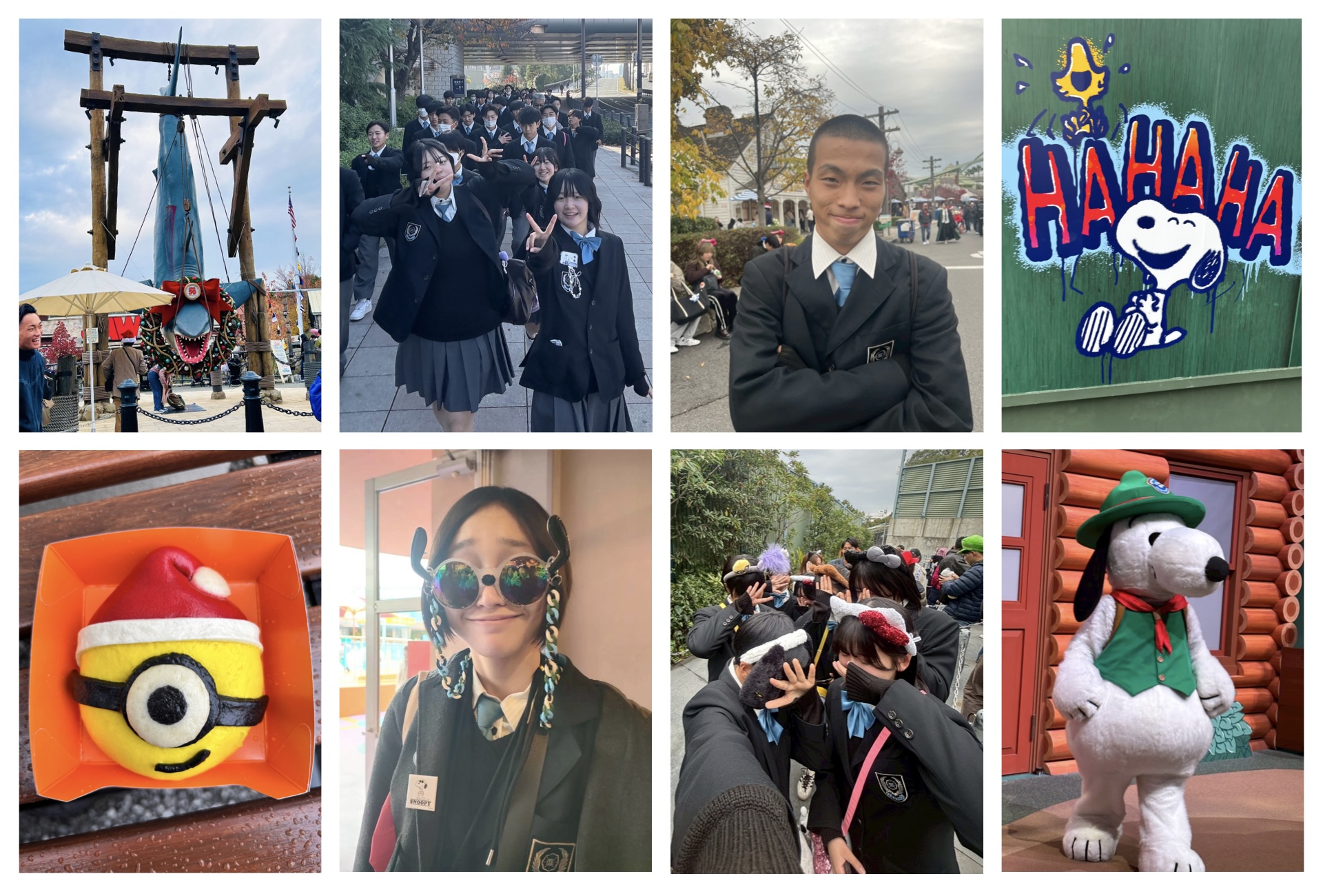 ①今日は修学旅行3日目でUSJに行ってきました!ハンバーガー屋さんでご飯を食べたり、フォトスポットで写真を撮ったりして短い時間でしたが、有意義に過ごすことが出来ました。キャラクター達にも会えて可愛い写真が撮れて嬉しかったです!写真を沢山とれたし、友達と楽しい時間を過ごすことが出来ていい思い出になりました!